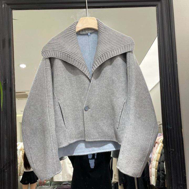 小个子短款呢子大衣女冬季高级小众不撞款拼接假两件连帽毛呢外套