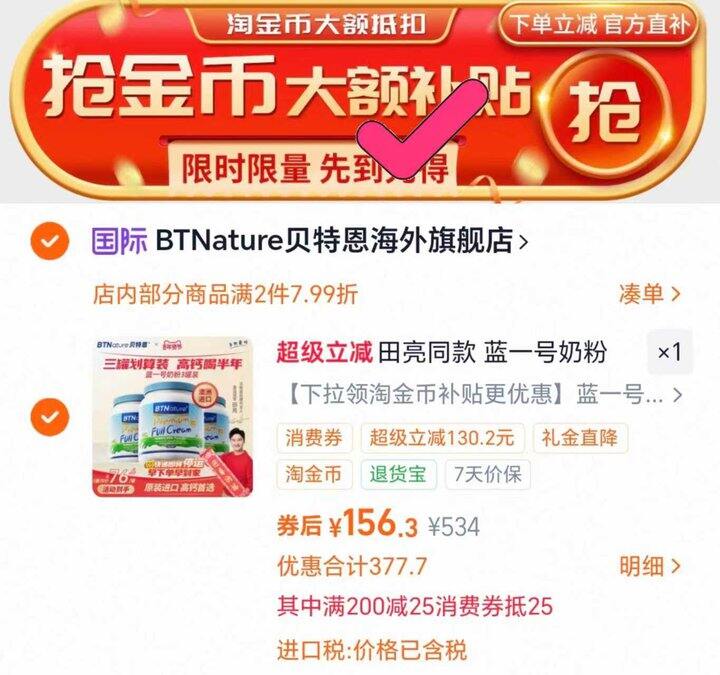 贝特恩蓝胖子奶粉 山姆在售 169