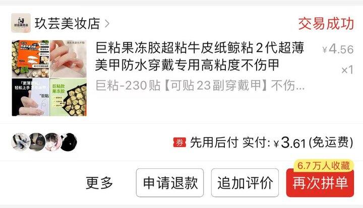 穿戴甲:能在同一家PDD店铺复购三次,说明真的喜欢。不确定是不是真的手工穿戴甲,但是质感真的非常好,而且甲型很适合我的小短手。不过不能用随单送的果冻胶不好使粘性不够的,要用牛皮纸胶或者液体胶。如果PDD退货不需要运费,我会长期更新PDD穿戴甲这个系列,真的太香了穿戴甲。