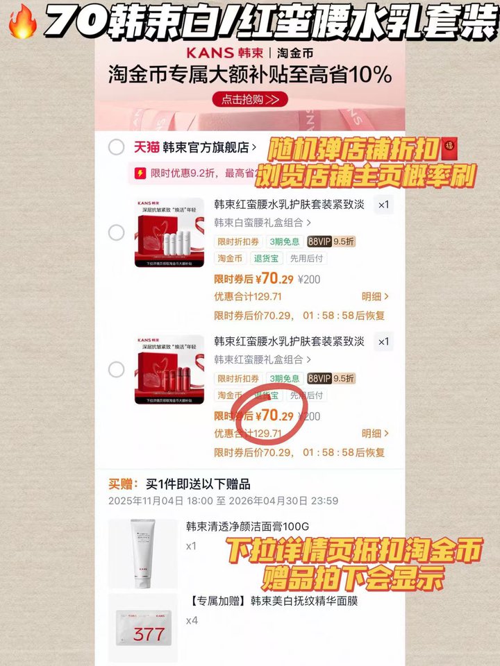 韩束白/红蛮腰水乳套装!💰70