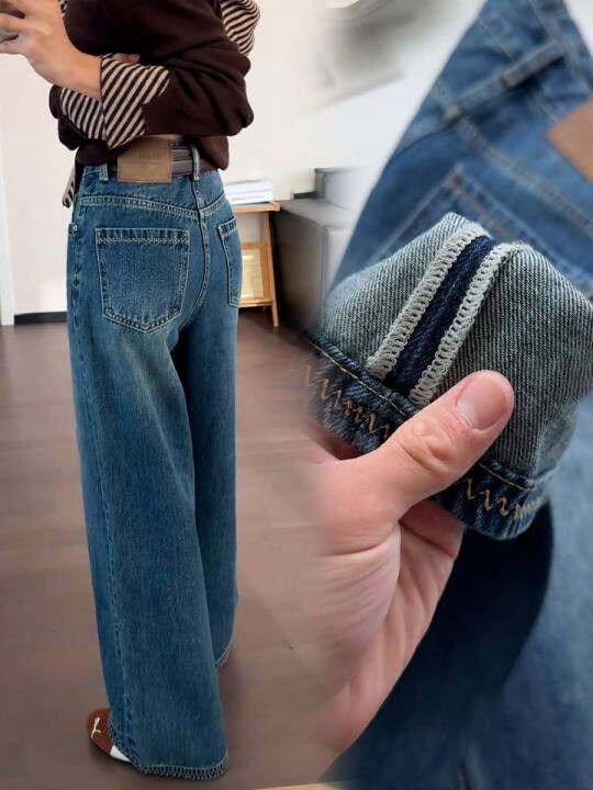 美式覆古蓝阔腿牛仔裤女2025新款秋季窄版阔腿高腰显瘦设计感长裤