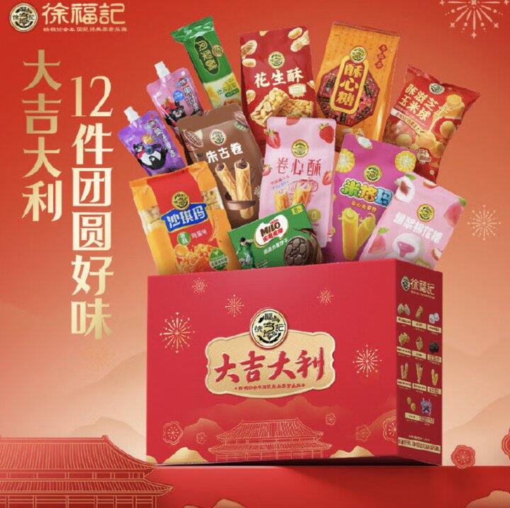 徐福记 大吉大利礼盒1395g:https://u.jd.com/lrGnOvN,拍3件实付136.32,订单显示反40.48元超市卡(需加购app拍),返后实付95.7。
