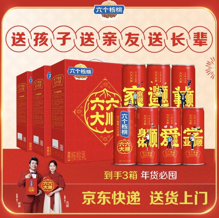 养元六个核桃年货礼盒240ml*10罐*3盒:https://u.jd.com/lOGPdj9, 拍下89, 折29.6元/箱。