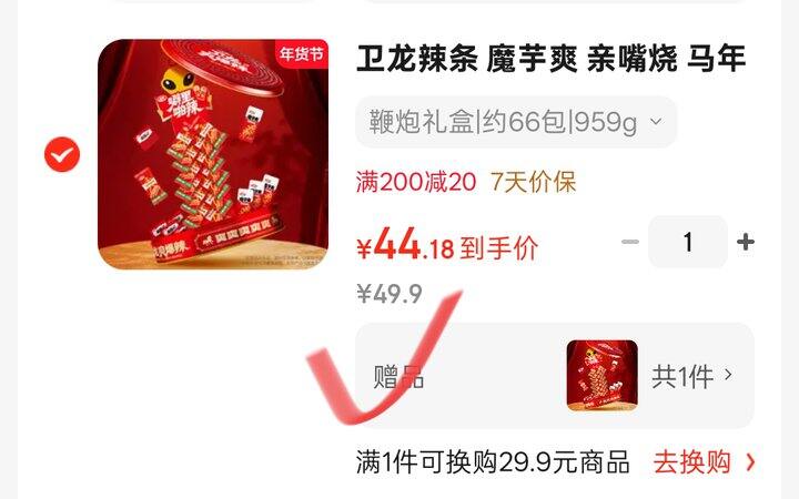 🔴卫龙凑后44.9元;买1赠1*折22.4元/盒
