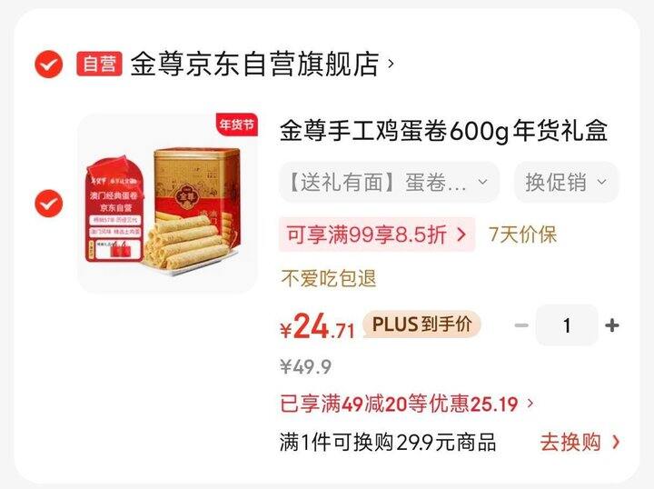 自营 澳门手信 金尊手工鸡蛋卷