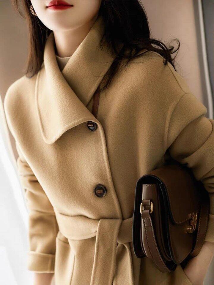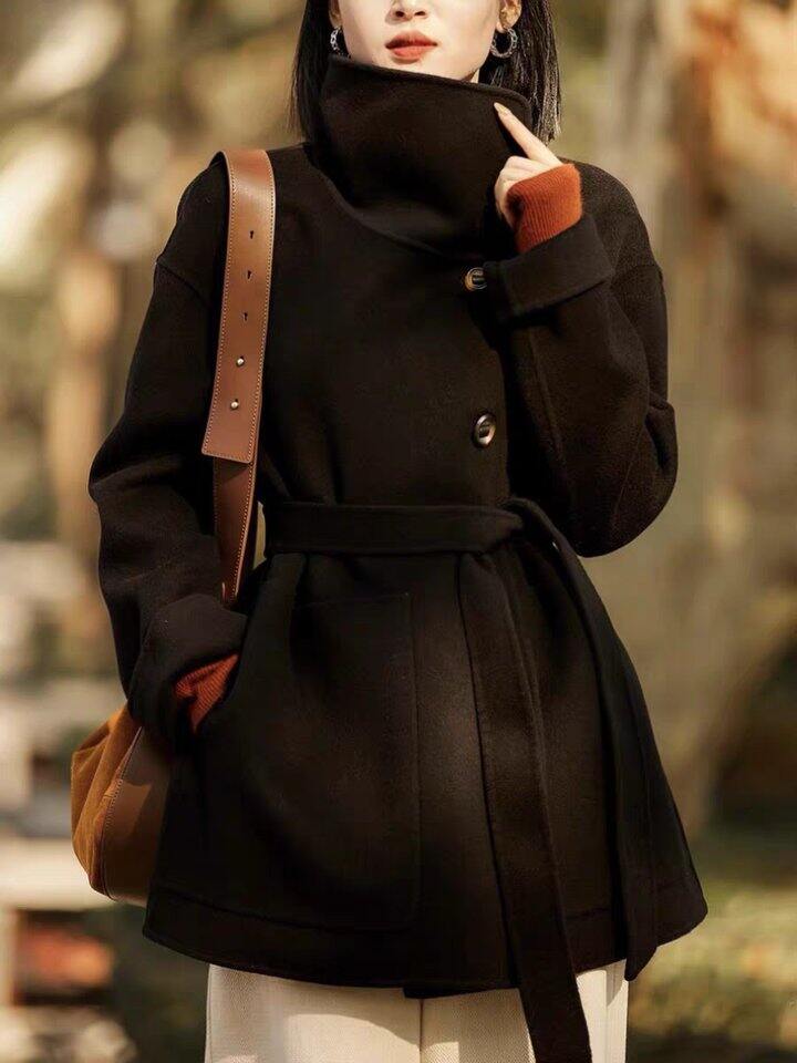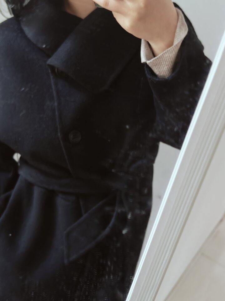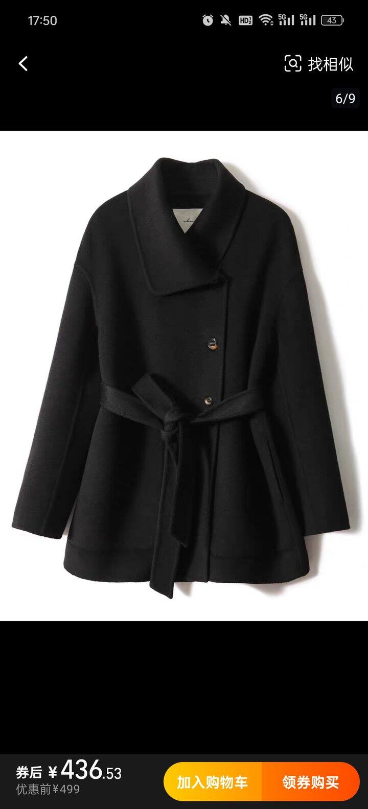 又降价了,之前是福利价299买的黑色,现在只要199了。版型适合我,面料貌似含了羊绒,记不清了。翻了下手机找了下之前拍的上身效果,将就看下。