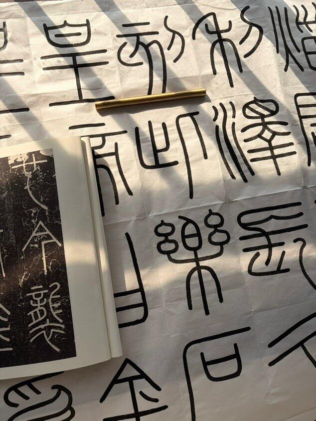 报名前我搜了很多评论,很多对林曦不好的评论我都会看,但看来看去还是想试试,勇于尝试是我这几年最大的变化,不需要等以后,想试现在就可以开始。我很喜欢课程的内容,但当时忙于评审职称的材料,没法做到按要求写作业,但我的篆书还是有一定基础的,所以忙好稍微空闲的时间,我按照暄桐理念养成了日课的习惯,每天练习半小时的书法,好像对每天没有太大的影响,但又有了实际的变化。