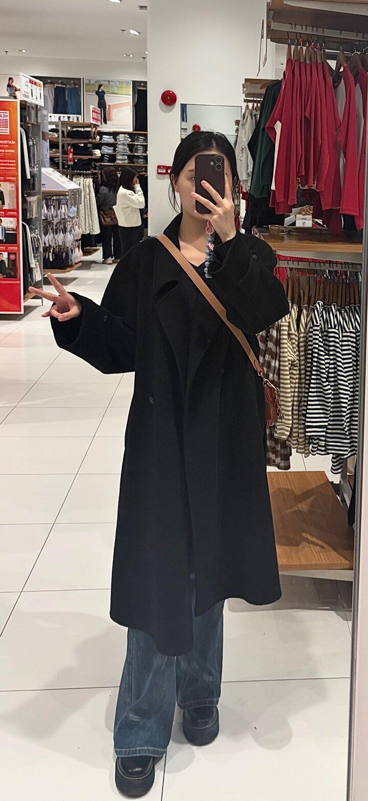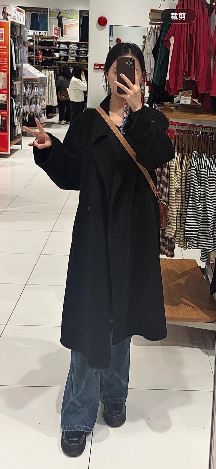 去万达逛了一圈 想买件浅色或者颜色亮一点的大衣 因为我到了冬天基本都是黑色和灰色 结果没看到一件满意的 款式、质量都不喜欢 价格也都不低了 但是都还不如我身上这件[哭笑] 才不到400[哭笑] 去年跟微博猪猪团买的 现在女装真的好难买啊 我特别喜欢这件黑大衣 有垂感 版型也很不错 配牛仔裤和长裙都很好看 每次配长裙都有不同的同事夸我大衣好好看 这双鞋更不用说啦 很百搭 不管春夏秋冬不知道穿什么都穿这双鞋[哭笑][哭笑][哭笑]