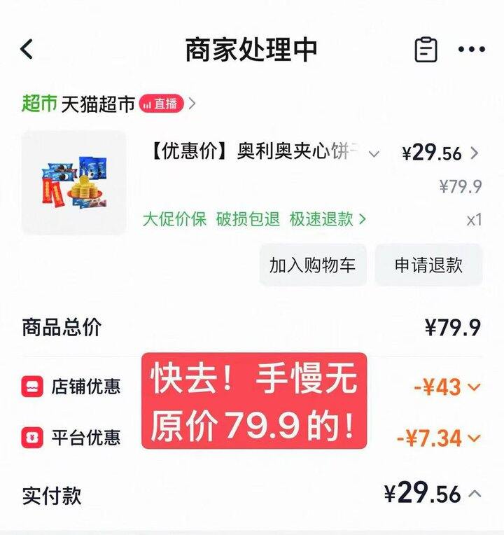 快!这个链接复制去🍑宝打开 手慢无‼️共接近2斤奥利奥!!!