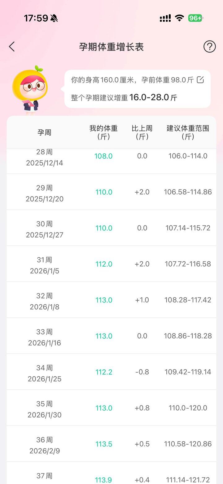 32周开始体重就一直徘徊,不怎么涨了,但是胎儿百分比上次B超大,不知道接下来还会大多少。