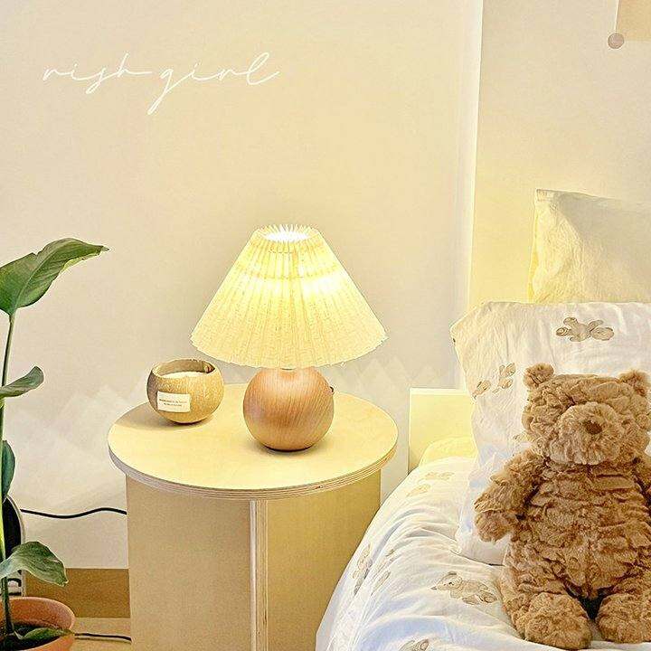 台灯卧室百褶覆古实木书房起夜夜灯温馨浪漫桌面装饰氛围感床头灯