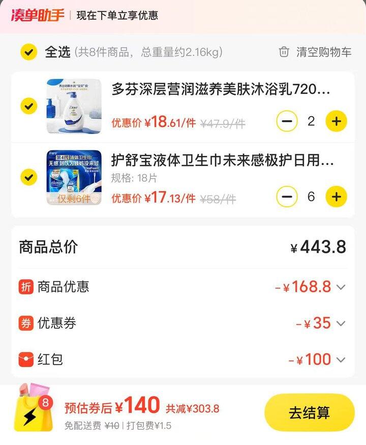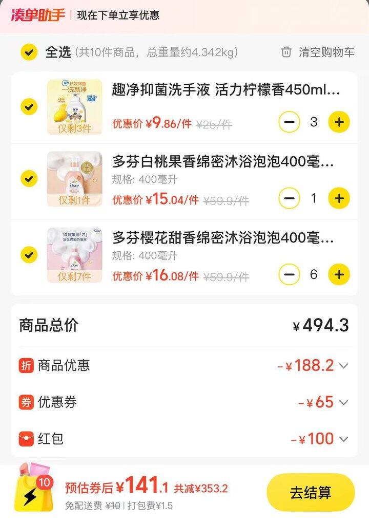 多芬商品下199-60劵叠加239-100店铺卷,