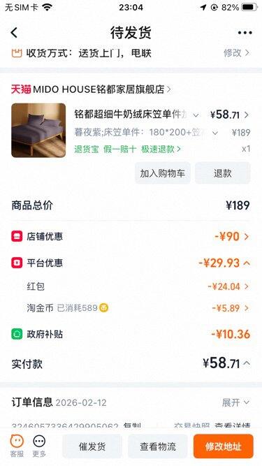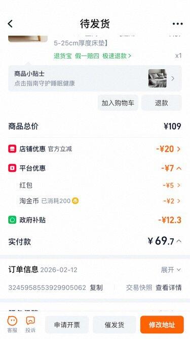 好舒服hhh 好像一米八的更便宜啦,用了淘金币足迹抵扣,五块钱的红包大家不一定有