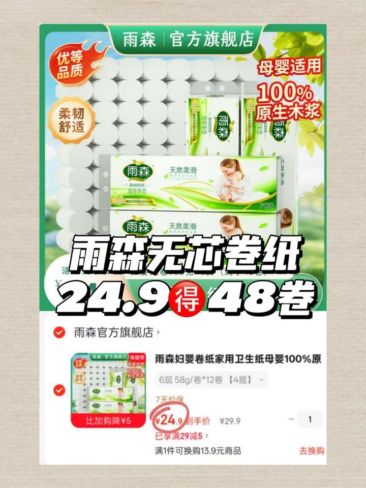 纸张还是六层加厚的超有韧劲不易破!24.9💰48卷用纸大户速囤上!