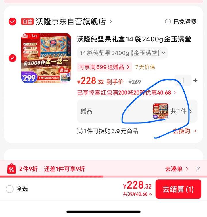 沃隆纯坚果礼盒14袋2400g金玉满堂