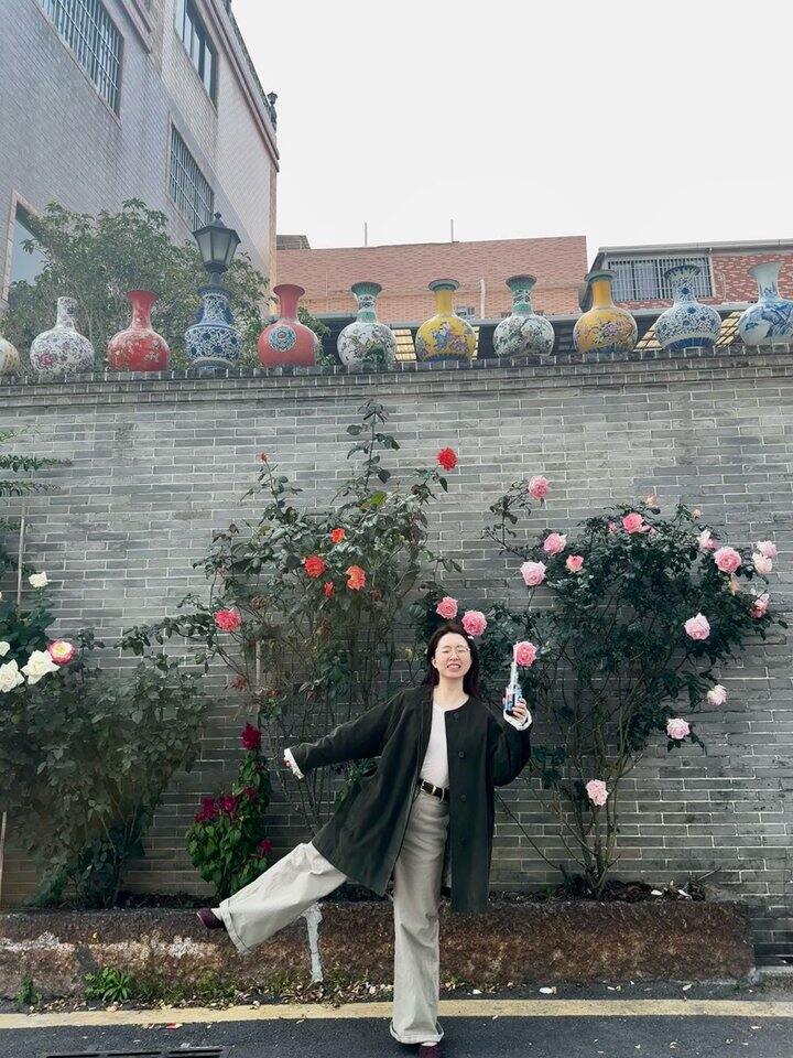 在不改变外套裤子的基础上,换发型、内搭和鞋子来改变风格