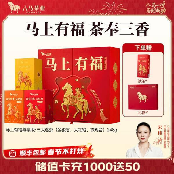 【京东】【164.9】八马茶业 组合茶叶礼盒 红茶金骏眉/大红袍/肉桂/铁观音/白茶/冰岛普洱 【金骏眉/大红袍/铁观音】248g:https://u.jd.com/lGygIdM