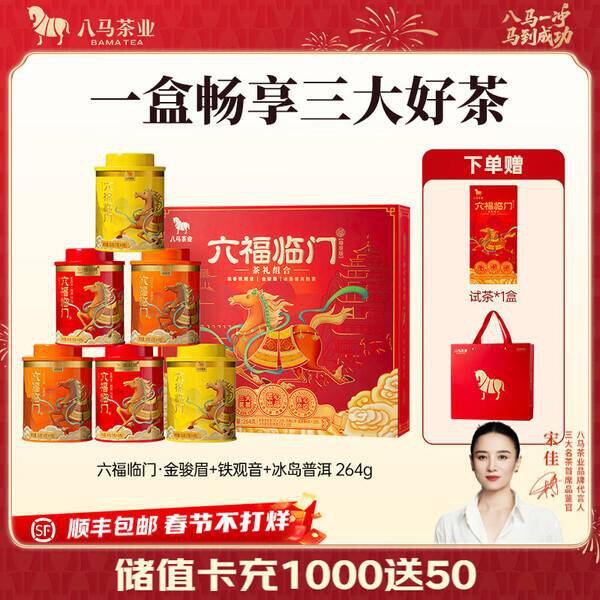 【京东】【228】八马茶业 组合茶叶礼盒 红茶金骏眉/大红袍/肉桂/铁观音/白茶/冰岛普洱 【冰岛普洱/金骏眉/铁观音】264g:https://u.jd.com/lGyd6wr