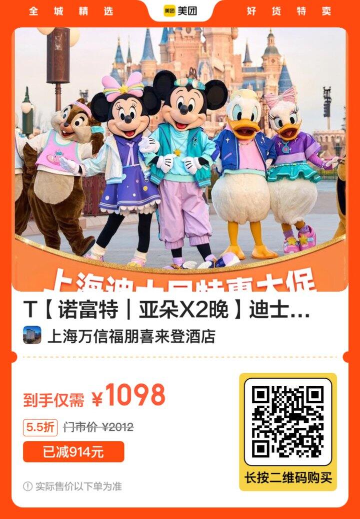 美団💥上海迪士尼🎠人均444.5起