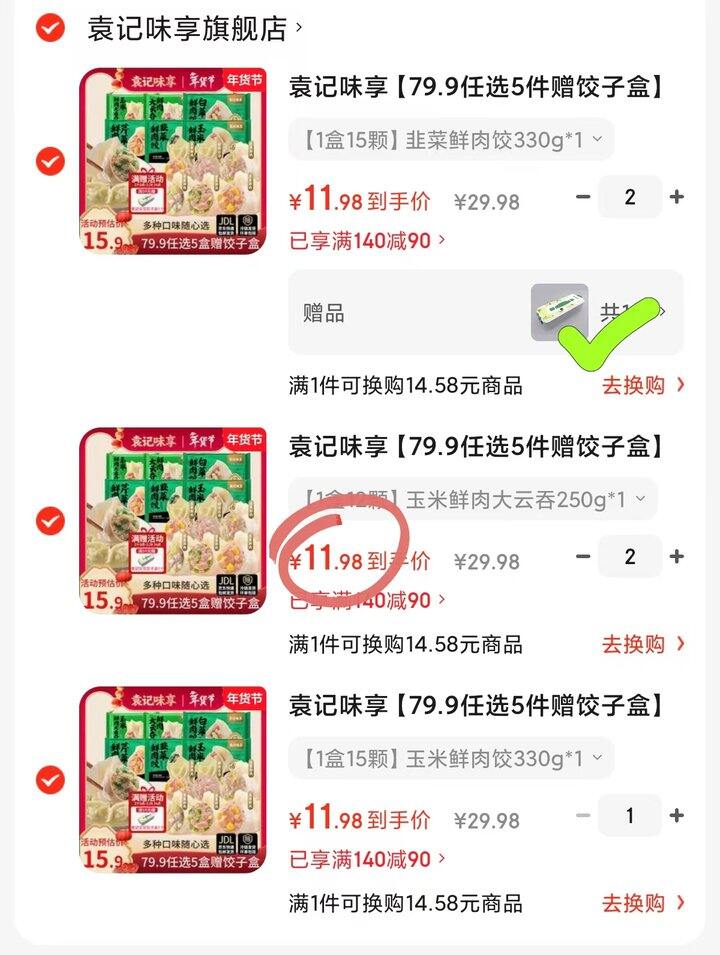 袁记大肉馅云吞/水饺✖️5💰59,送饺子盒