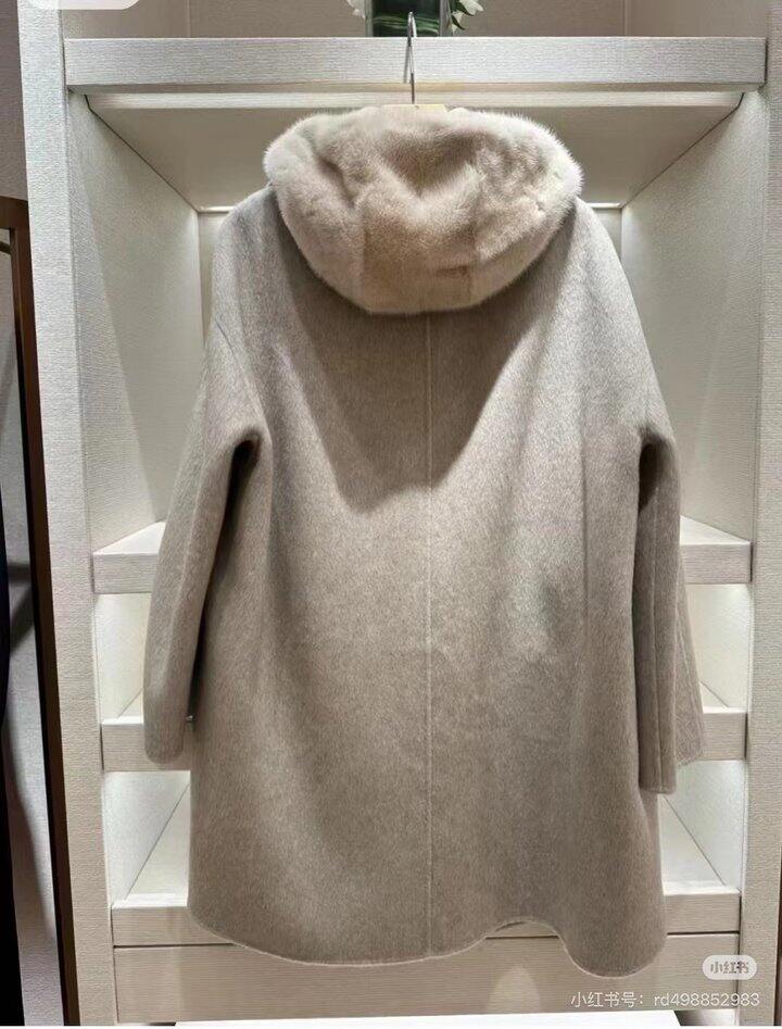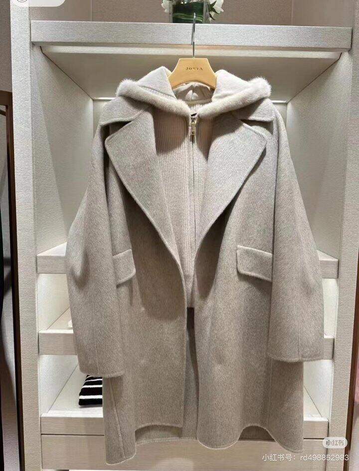 很有质感很好看,外套是山羊绒,里面是针织拼接貂毛帽子,折扣很大,但是一问价格快8K,太贵了