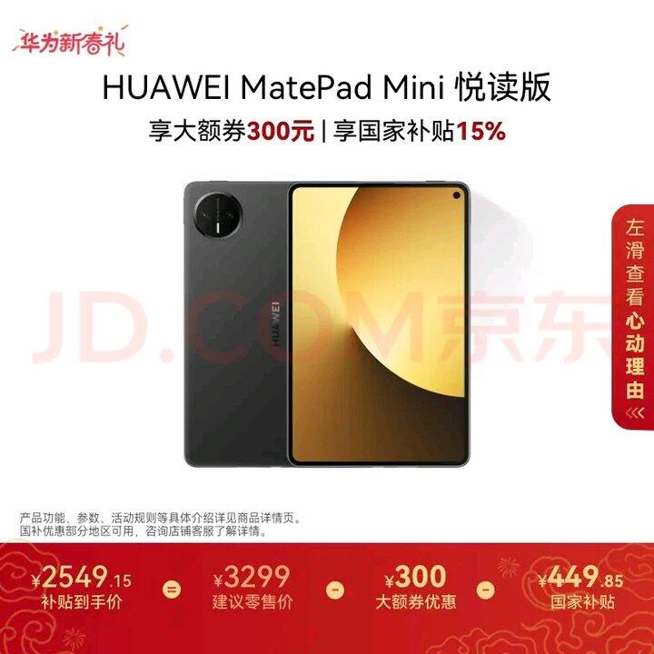 [闪耀]MatePad Mini 悦读版 华为平板电脑OLED屏SIM卡版可通话 12+256GB 曜石黑