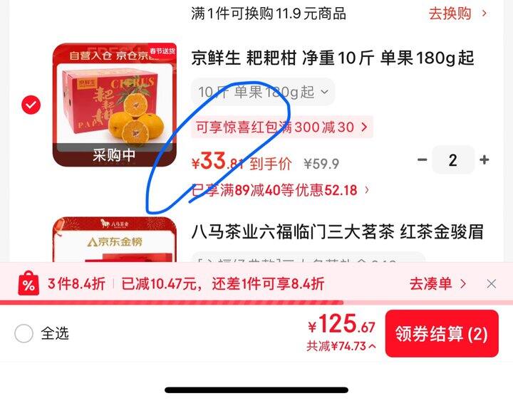 2,京鲜生 耙耙柑 净重10斤 单果180g起