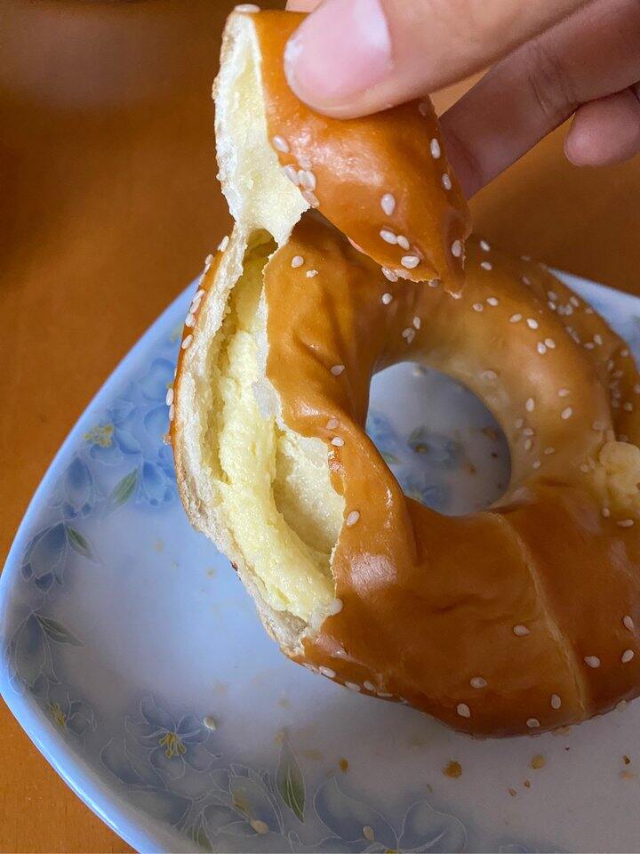 我买的这个奶酪贝果一共8个,才16.8,贝果口感是哏啾的,奶酪馅也好吃。到货以后我用保鲜膜给每个贝果单独包装,冷冻起来,要吃的时候直接微波炉加热。