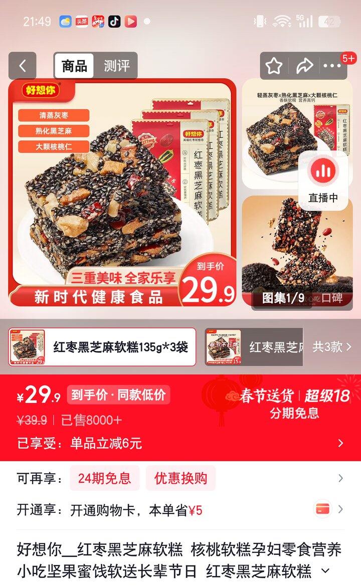❷红枣黑芝麻软糕3袋【24.9】
