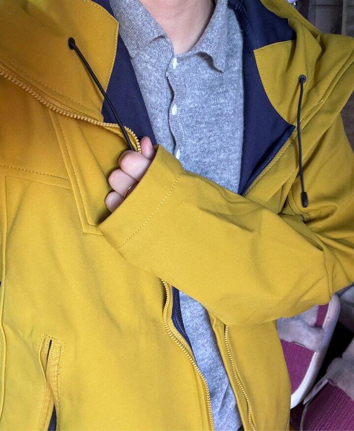 很像我之前滑雪穿的那款,没有滑雪的厚。立马就留下了,还防水。才二十几。质量比之前买的嫩黄色还要好。版型没有那个大。