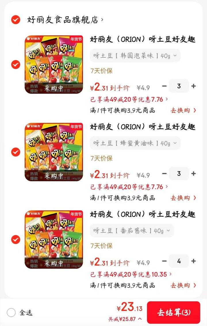 任选10件23.13元,折2.3/包!