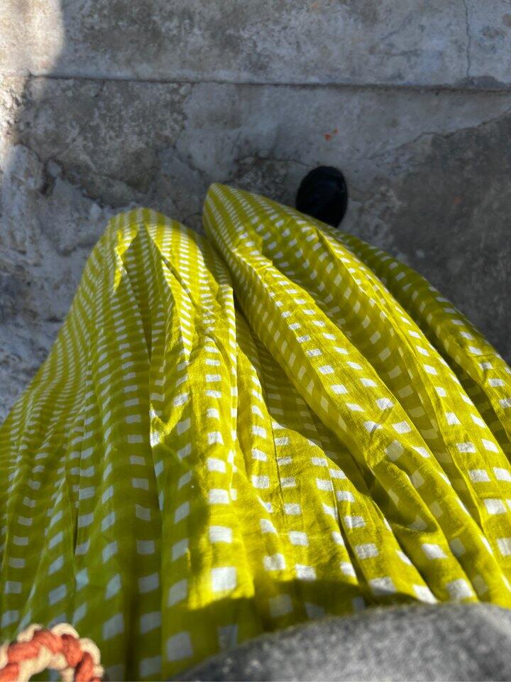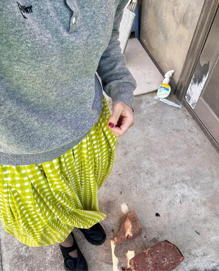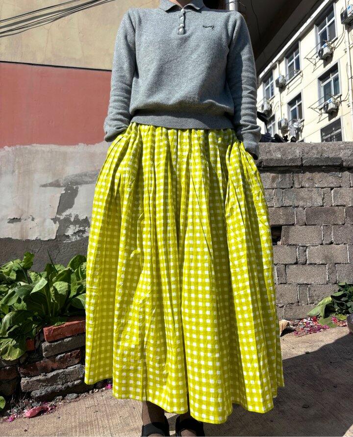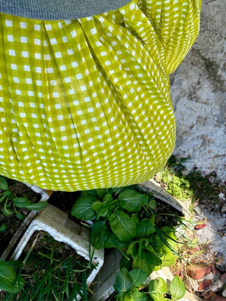 好喜欢这个颜色!在外婆的菜地里随便拍了一下,阳光下太美了。皱也不影响裙子的美丽。裙摆很飘逸,风吹着很有春天的感觉!