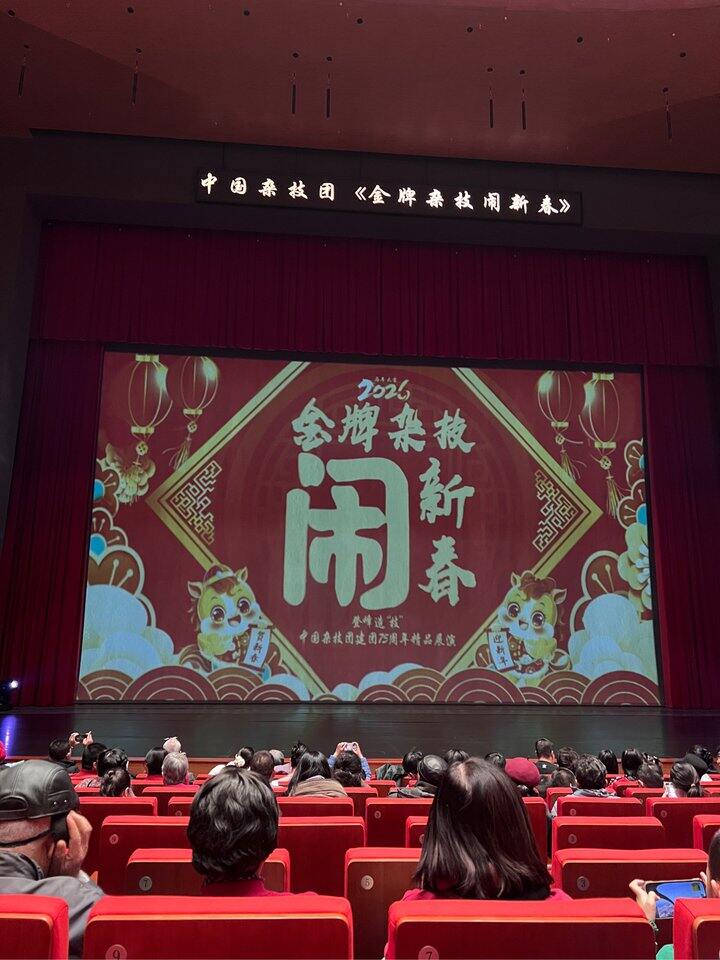 天鹅湖和杂技表演他们选了后者,第一次来通州艺术中心看展览,趁春节车不多路不堵可以来一趟。现场看杂技表演很刺激,很多节目都斩获了中外大奖,有的还上过春晚。整体节奏也安排的很好,松弛有度,中间还有小丑串场活跃气氛,有一个扔大球的环节,现场观众都玩得超开心。我爸妈也都好开心,说比在家看春晚好看多了。买了最贵一档票,从工会app里订票有7折,还有云闪付北京银行立减, 相当于56折,巨划算了,位置很好,看得贼爽!