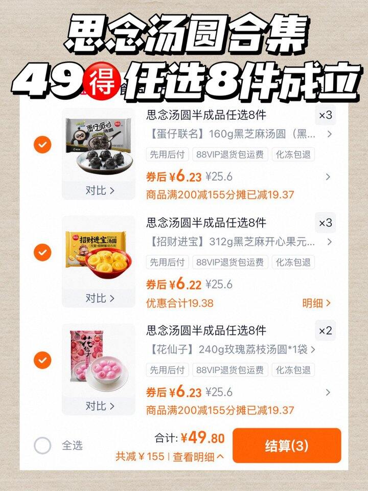 经典的黑芝麻馅儿一口下去好满足!现在随意搭配8件才💰49!