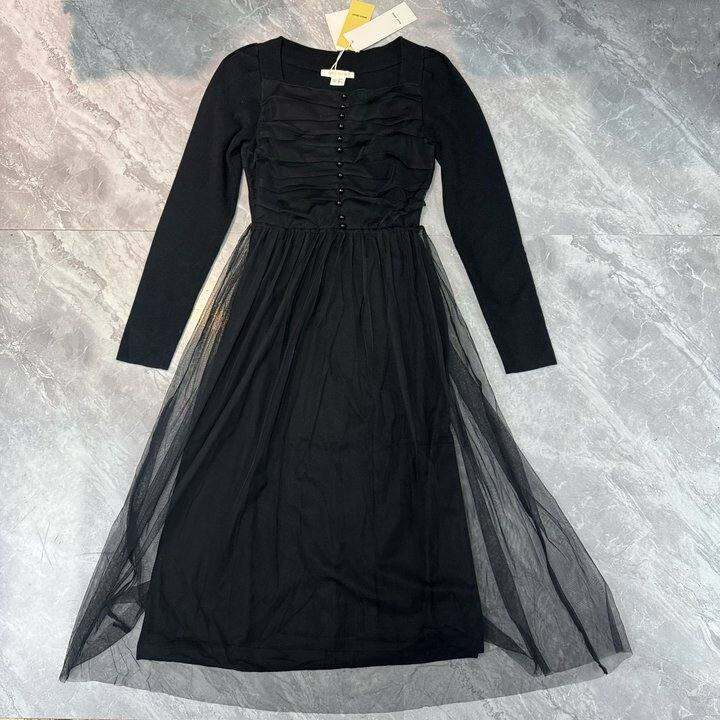 2.22百j好 春秋法式小众方领收腰显瘦网纱中长款长袖仙女连衣裙