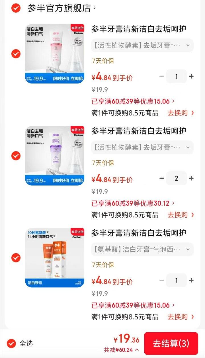 任选4件19.9💰,折4.9/支