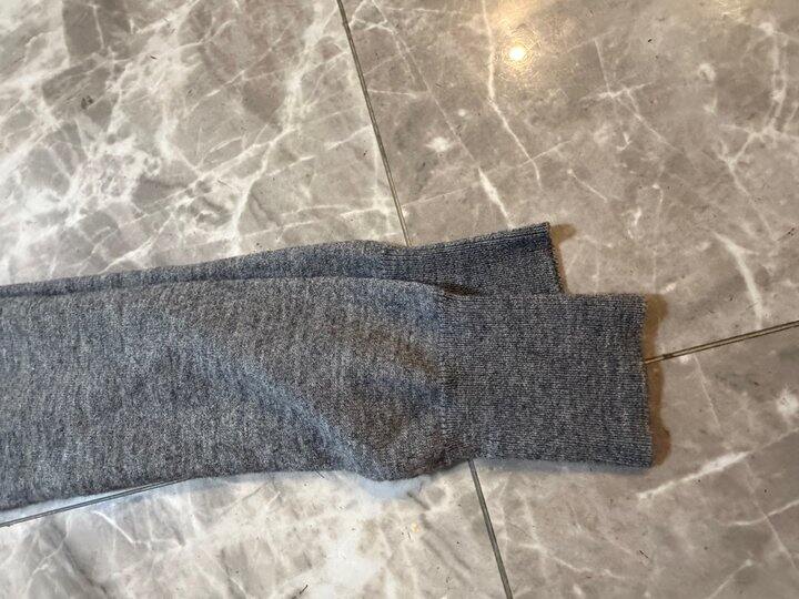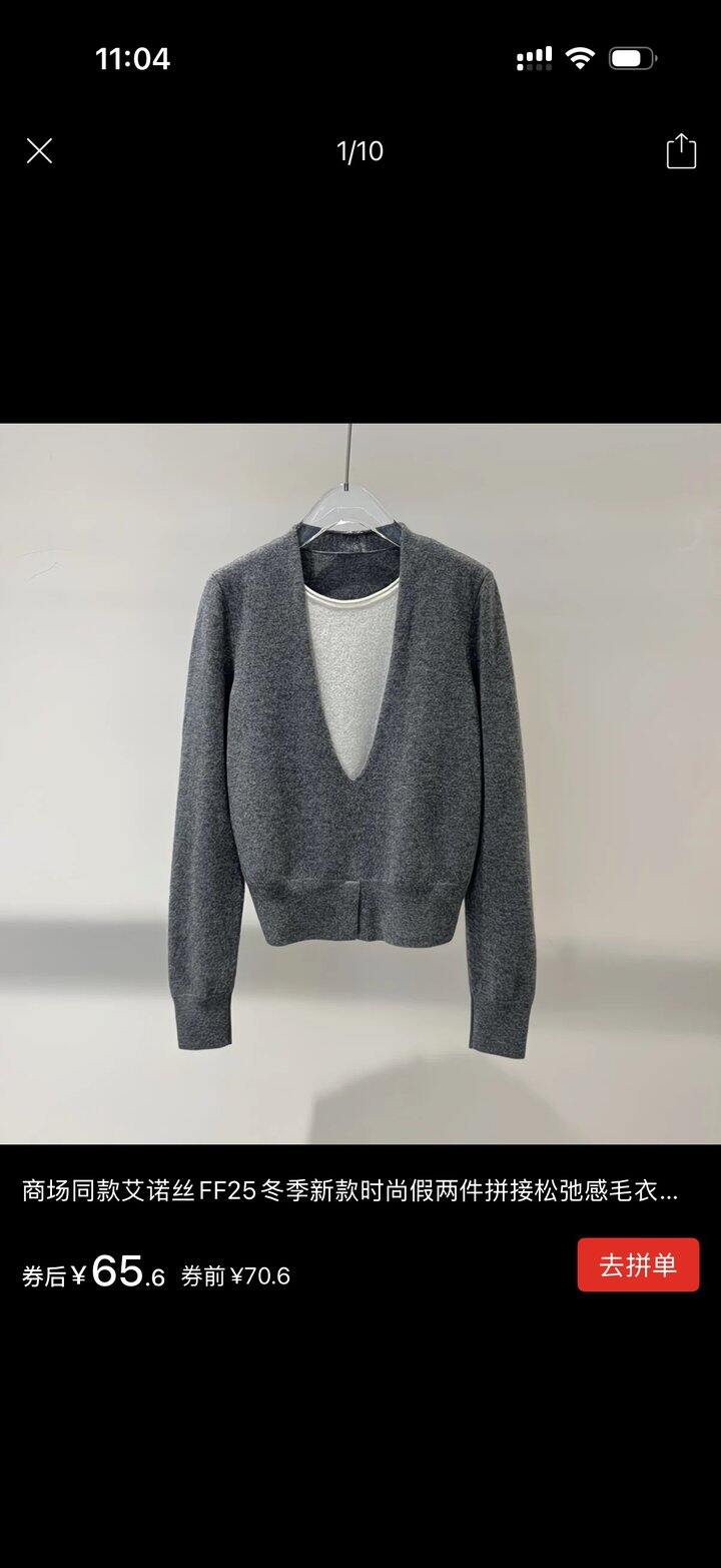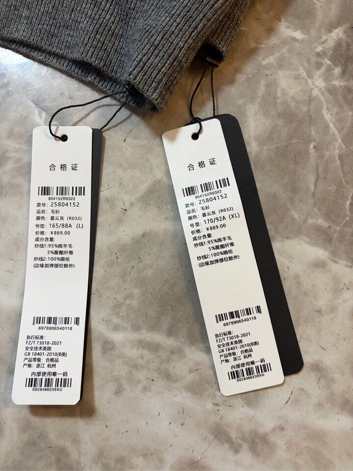 这款针织衫95%都是假货,标签尺码完全乱标。我先买了L码觉得有点紧,又买了一件XL,结果对比发现L码反而比XL还大。因为款式还行我就留了L码,可洗完直接缩水,穿上跟XL的效果一样了。衣服穿着倒是挺柔软,就是缩水之后变短了,得搭配高腰裤穿,不然会露腰。