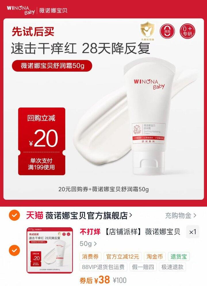 U先!薇诺娜宝贝舒润霜💰38🉐50g大支!