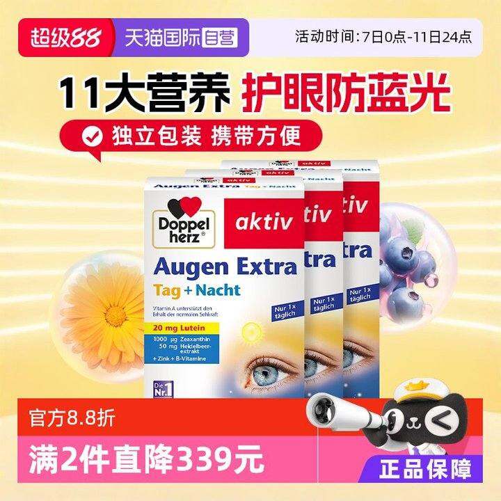 【自营】德国进口双心越橘蓝莓叶黄素软胶囊成人护眼片脂非软糖*3