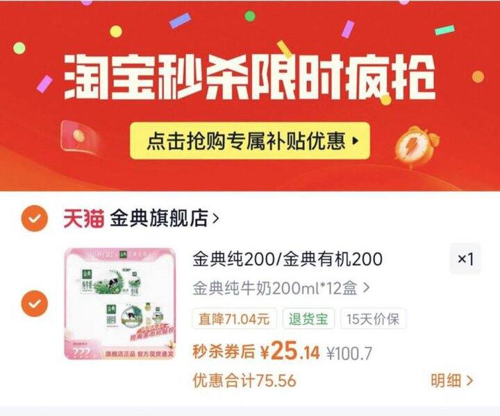 下拉详情拍,25💰金典旗舰店纯牛奶200ml*12盒