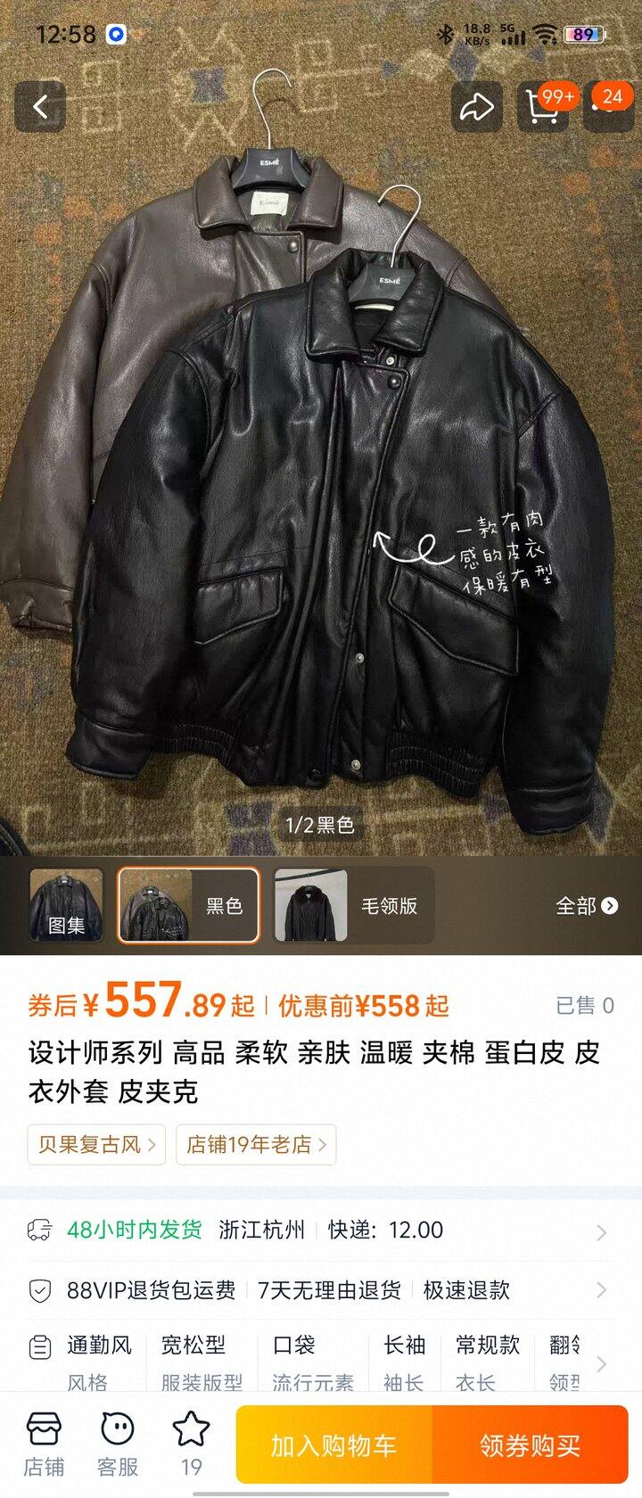 我在善喜家199买的件夹棉的皮衣,oversize款贼厚实,我妈说厚度堪比个小羽绒服。