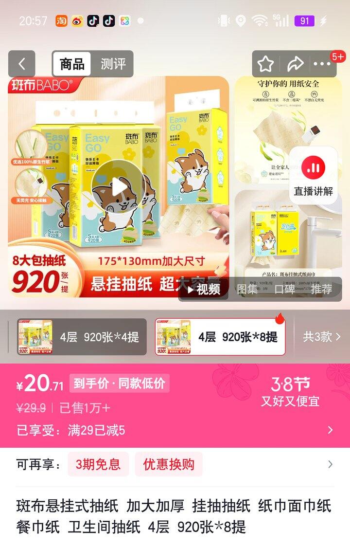 斑布悬挂式抽纸4层【20.71】
