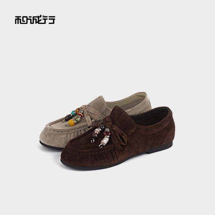 和诚行2025秋季复古勃肯女款平底休闲西部风乐福鞋1830058