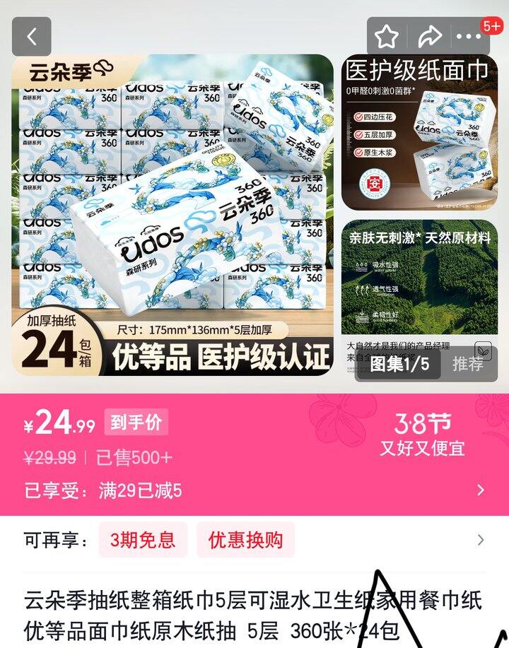 ❹经典抽纸𝟑𝟔𝟎张✘𝟐𝟒包【𝟐𝟒.𝟗】