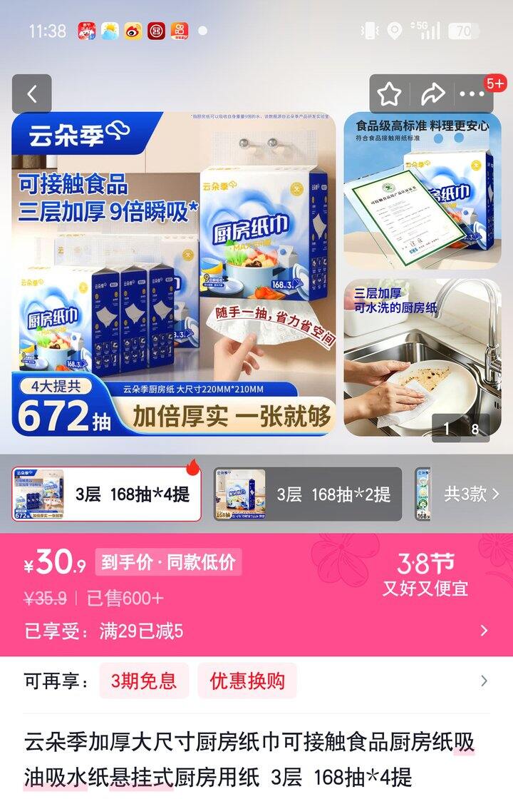 ❸厨房抽纸𝟏𝟔𝟖抽✘𝟒提【𝟑𝟎.𝟗】