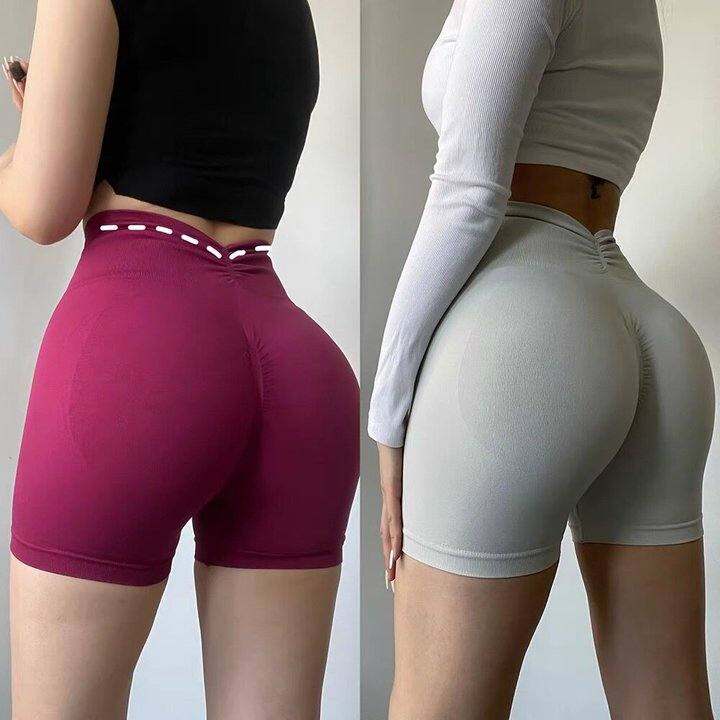 欧美后V腰健身短裤透气显臀运动蜜桃臀训练三分裤撸铁瑜珈裤高腰