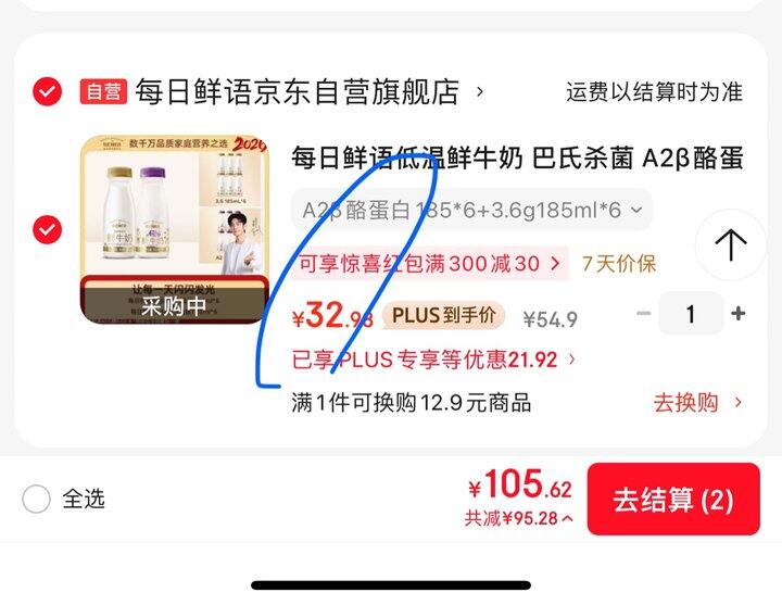 1,每日鲜语低温鲜牛奶 巴氏杀菌 A2β酪蛋白185ml*6+3.6g蛋白185ml*6 共12瓶