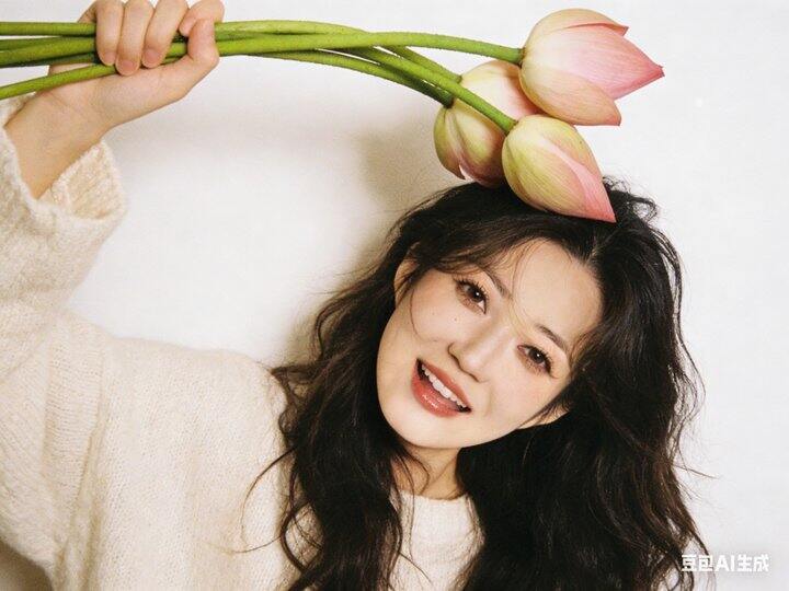 手持一大束荷花花束,花束有开放的有未开放的,中景镜头,远景镜头都要有情绪氛围好,古早味,营造柔和平和朦胧氛围,妆容自然网感头像。9张单独的不要拼图。4:3比例。