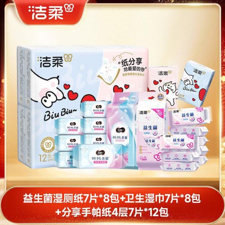 JD【凑单17.92】洁柔.手帕纸4层7片*12包+益生菌湿厕纸7抽*8包+卫生湿巾7抽*8包,凑200-20券,包邮活动