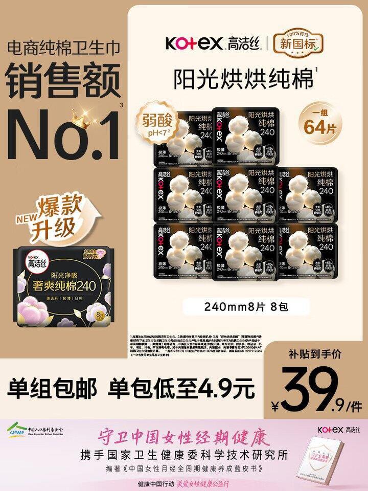 JD【36.90】高洁丝.阳光烘烘卫生巾240mm*8片*8包,包邮活动,折0.57/片。 https://u.jd.com/lrka3zB